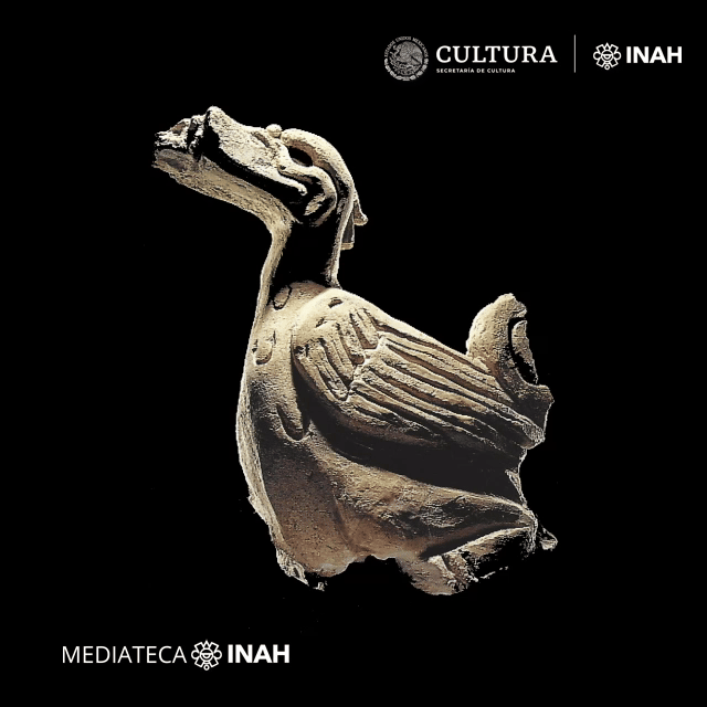 Hoy presentamos una selección de esculturas prehispánicas de Comalcalco. Una de ellas representa un ave de la familia Anatidae, modelada en estuco; la otra, elaborada sobre ladrillo y hallada entre los escombros de la fachada del Templo V de la Gran Acrópolis, muestra la figura de un pelícano que formaba parte de la decoración exterior del edificio.