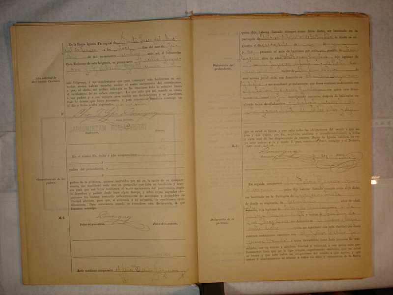 - Libro de Información Matrimonial, num 85, año 1921 (en realidad contiene información a partir de 1920), Sección Sacramental, Serie de Información Matrimonial (de hijos legítimos)