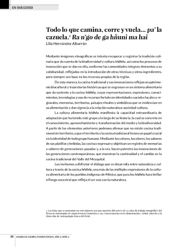 - Diario de Campo. Cultura alimentaria, cocinas y patrimonio N°. 4 (2018) enero-abril