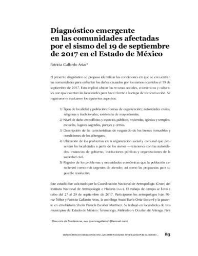 Diagnóstico emergente en las comunidades afectadas por el sismo del 19 de septiembre de 2017 en el Estado de México