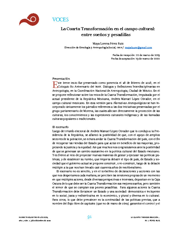 - La Cuarta Transformación en el campo cultural: entre sueños y pesadillas