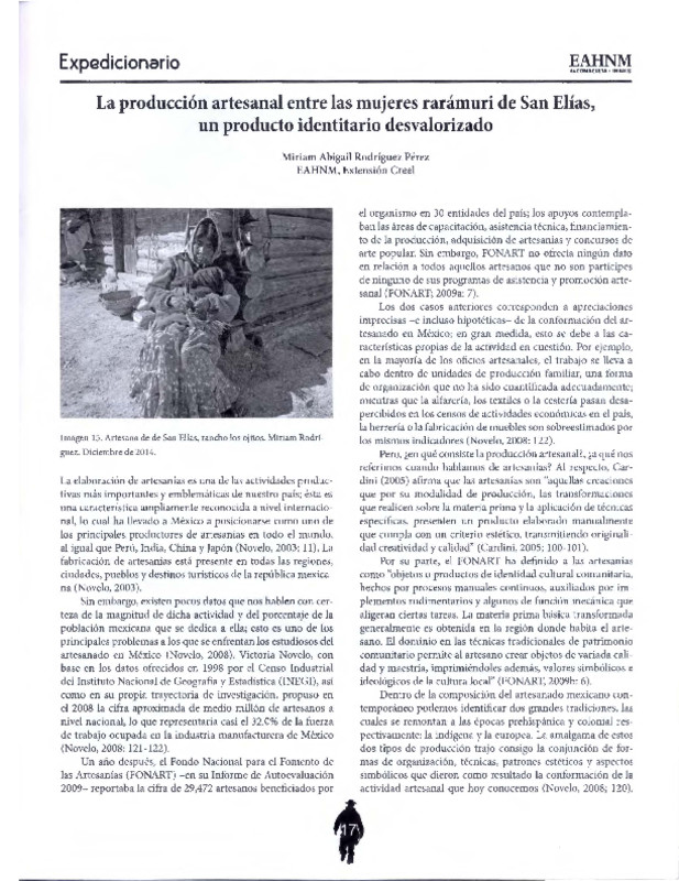 - La producción artesanal entre las mujeres rarámuri de San Elías, un producto identitario desvalorizado