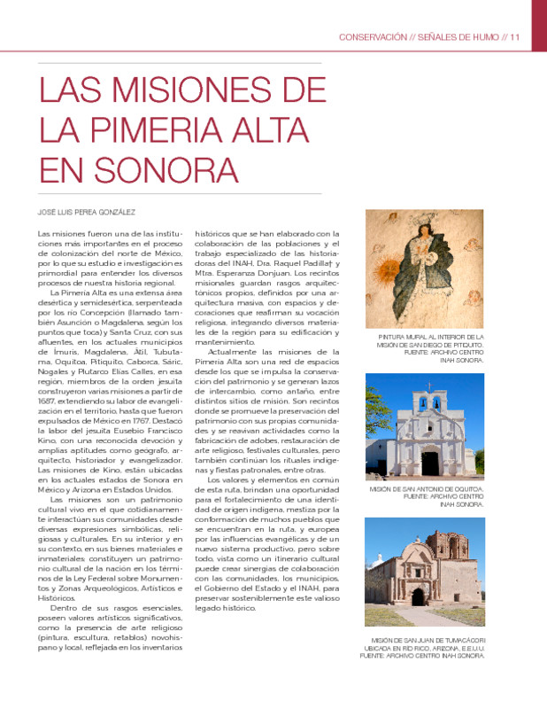 - URL Las misiones de la Pimería Alta en Sonora. Señales de humo Núm. 44 (2020)