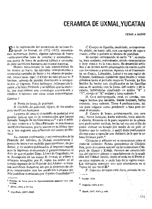 - Sáenz, César A. 1969 Exploraciones y restauraciones en Uxmal, Yucatán, en Boletín INAH, Núm 36. México.