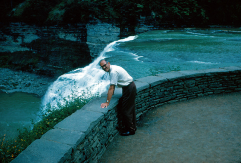Hombre se apoya en barda de proteccion a orillas de un rio