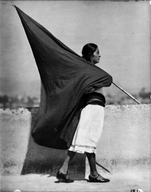- Información obtenida del proyecto Catalogo Selectivo. Fototeca Nacional - INAH ©2005 Nota: En numerosas ocasiones se ha dicho que la mujer lleva una bandera anarco-sindicalista, pero Mariana Figarella recuerda que Tina era coomunista y que la bandera más bien parece ser roja. Se mostró en la exposición de Modotti en diciembre de 1929, en el vestíbulo de la Biblioteca Nacional. Información proporcionada por Rosa Casanova. Esta imagen emblemática es una de las pocas fotografías preparadas de Modotti se tomo en una azotea de México, D.F. y durante años se creyó que la modelo era la comunista mexicana Benita Galeana, una luchadora por la igualdad social. La propia Galeana lo desmintió y la modelo sigue sin haber sido identificada. Modotti busco con gran diligencia los elementos que dominan la fotografía. V.F. 35300. Depuración realizada por Paula Barra, noviembre de 2009.