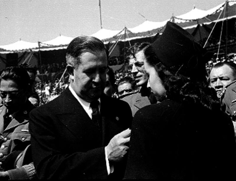 - Manuel Avila Camacho condecora a enfermera durante el festival del Escuadrón 201 en el Estadio Nacional