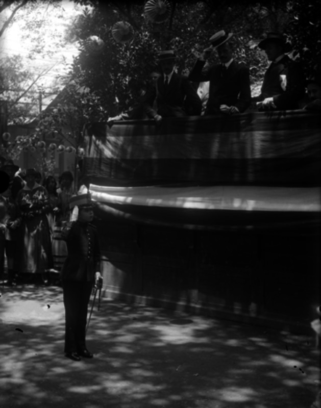 - Niño realizando el saludo militar ante unos hombres, durante una fiesta