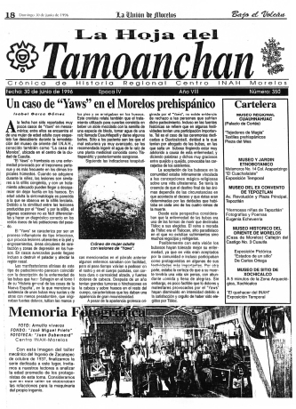 - - Un caso de "Yaws" en el Morelos prehispánico por Isabel Garza Gómez. - Memoria fotográfica.