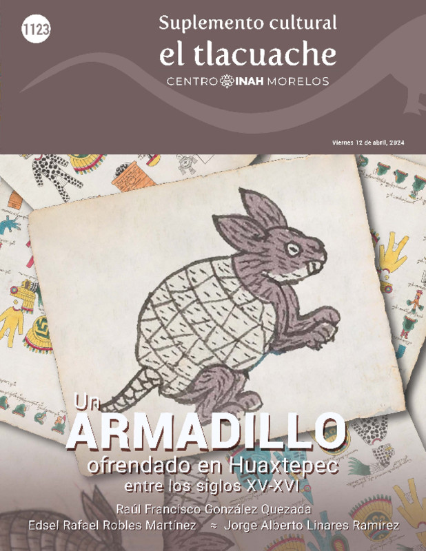 - - Un armadillo ofrendado en huaxtepec entre los siglos XV-XVI por Raúl Francisco González Quezada, Edsel Rafael Robles Martínez y Jorge Alberto Linares Ramírez.