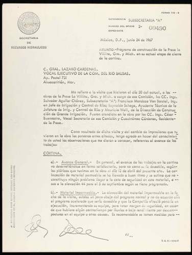Vida laboral del general Lázaro Cárdenas: Plan de financiamiento para las presas Palos Altos y La Villita ...