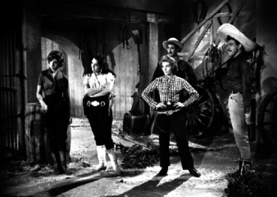 Flor Silvestre, Manuel Capetillo, Irma Dorantes y otros actores en la filmación de una película ...