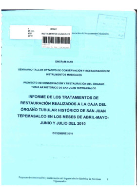 Informe de los tratamientos de restauración realizados a la caja del órgano tubular histórico de San Juan Tepemasalco en los meses de abril - mayo ...