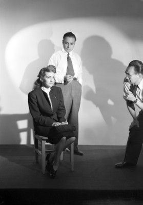 Pareja de actores sentados y abrazandose, con las miradas encontradas y el director observandolos, retrato de grupo ...