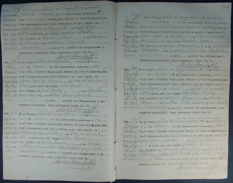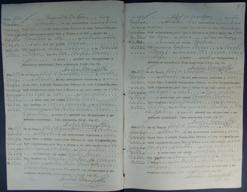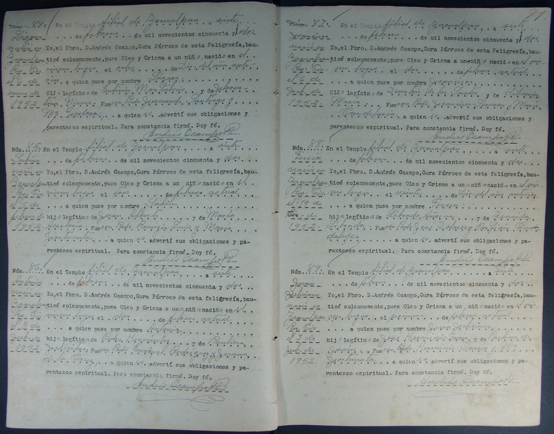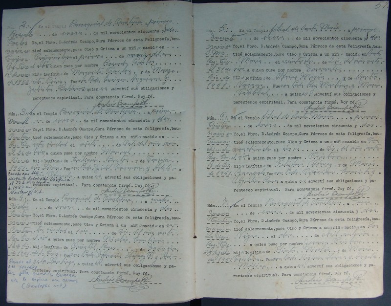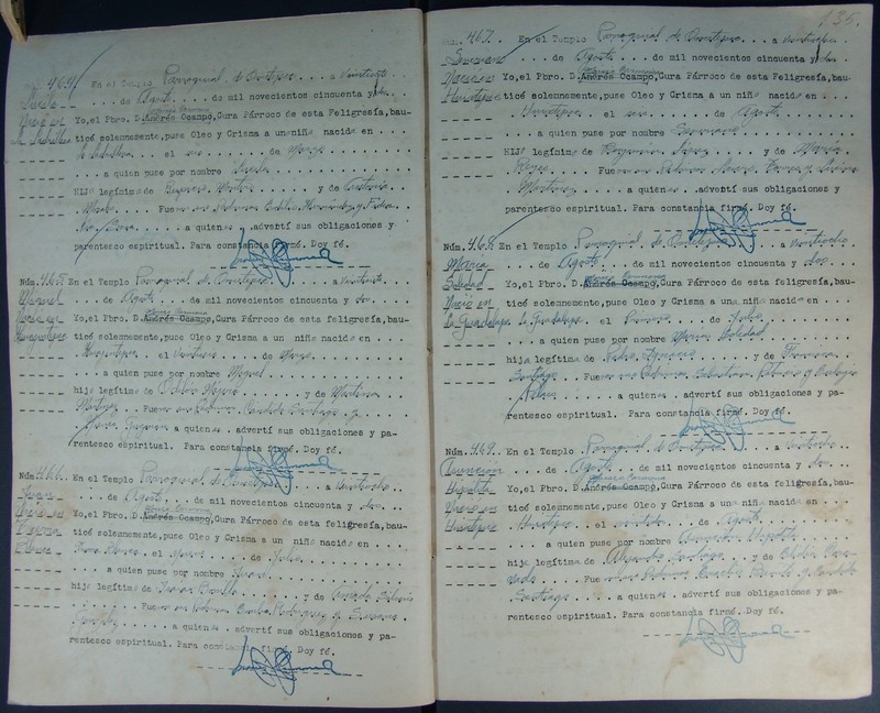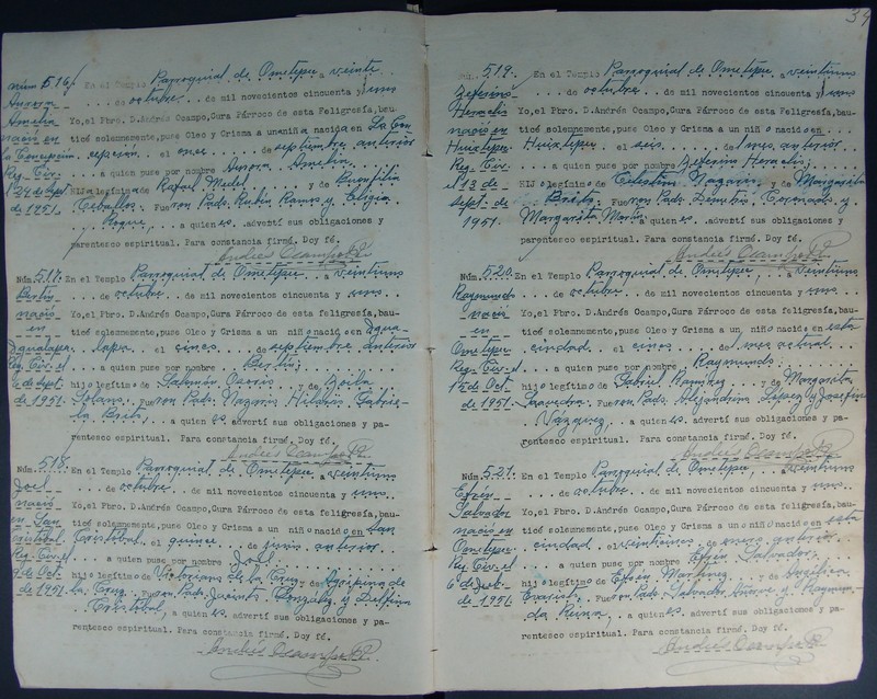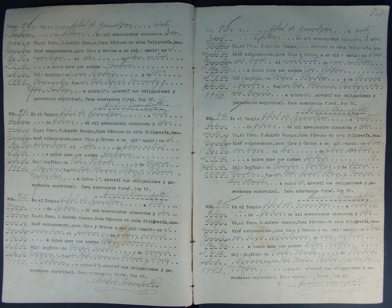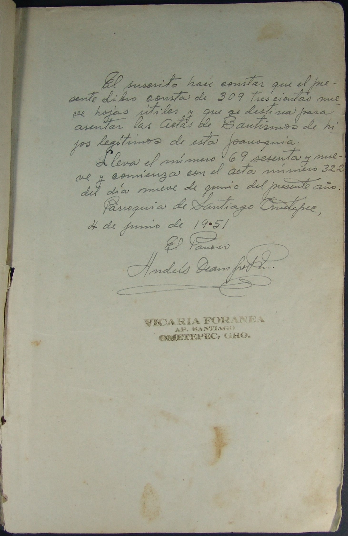 Libro 77. Bautismos de hijos legítimos de la parroquia de Ometepec, 1951-1952. Archivo Parroquial de Santiago Apóstol. Sección Sacramental