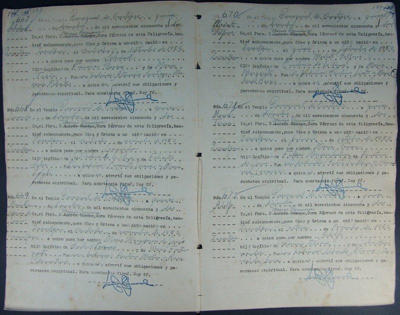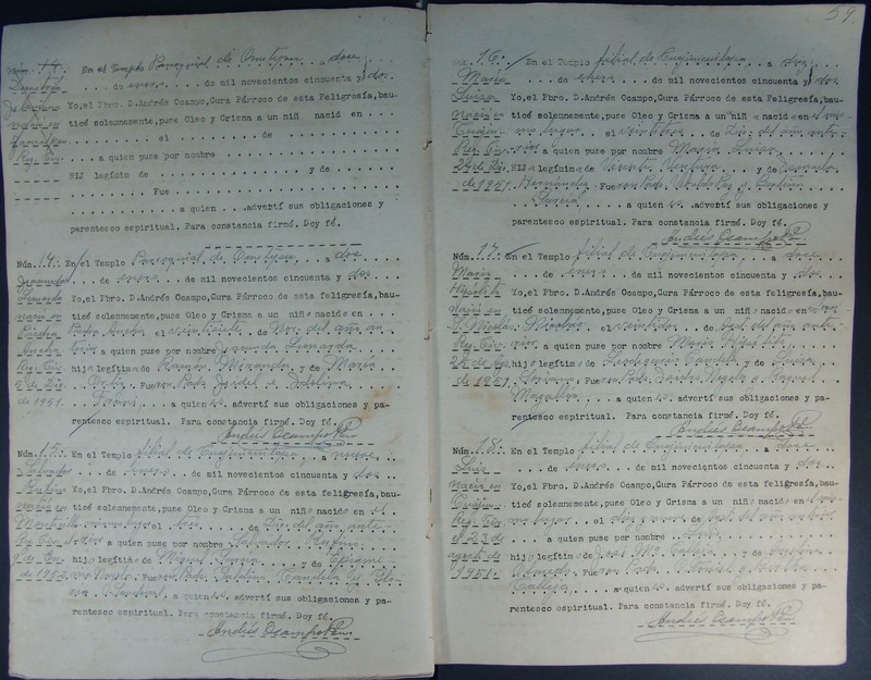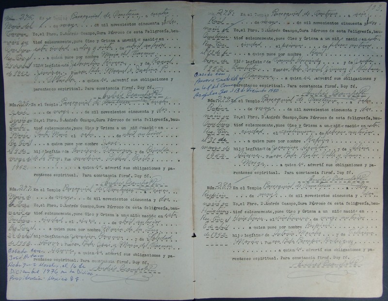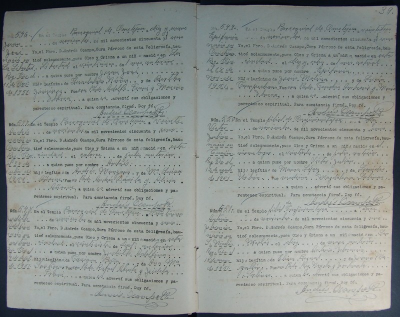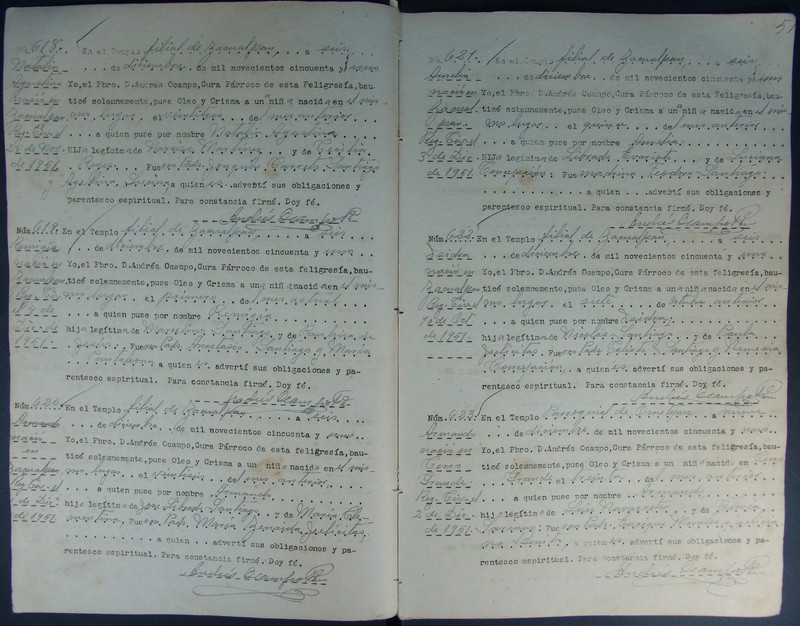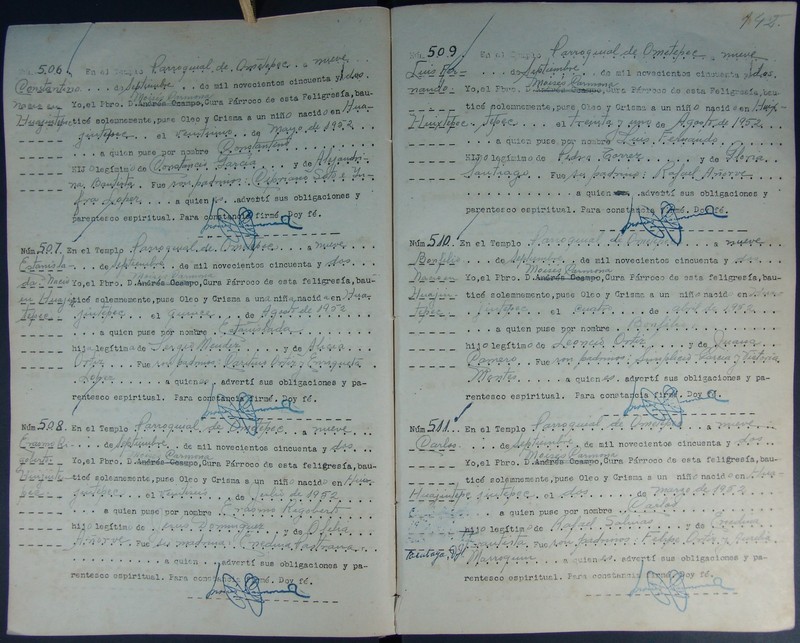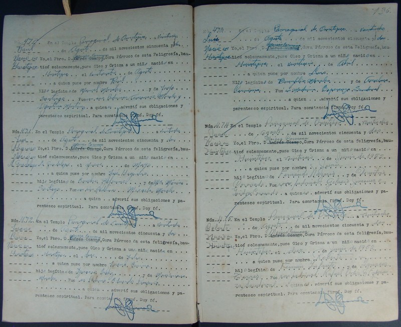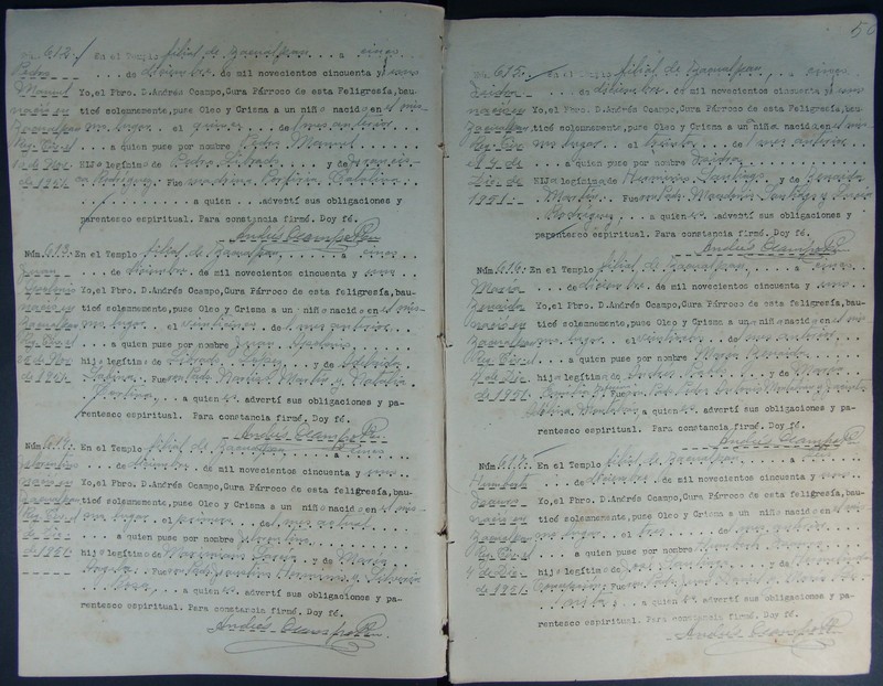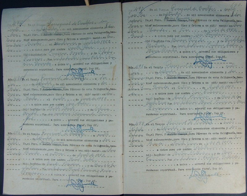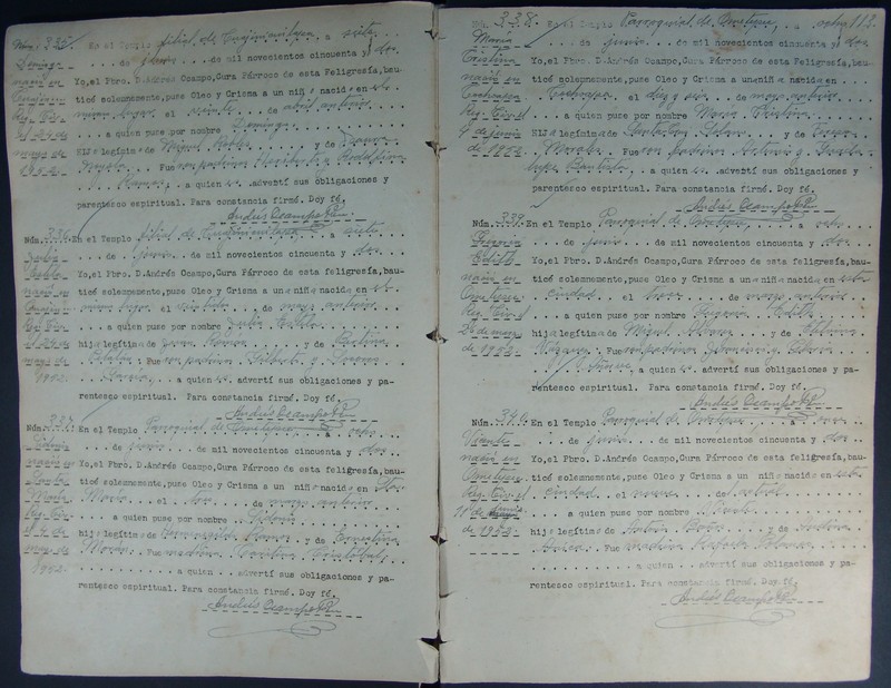 Libro 77. Bautismos de hijos legítimos de la parroquia de Ometepec, 1951-1952. Archivo Parroquial de Santiago Apóstol. Sección Sacramental