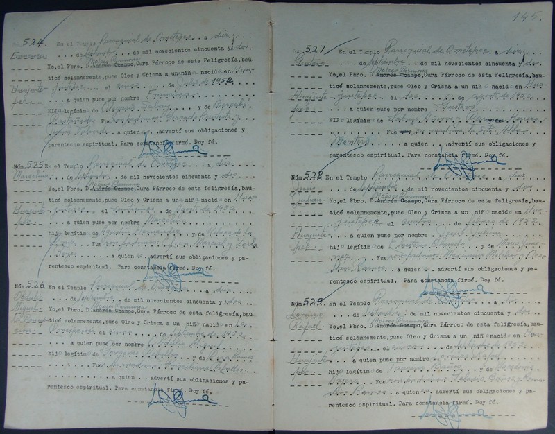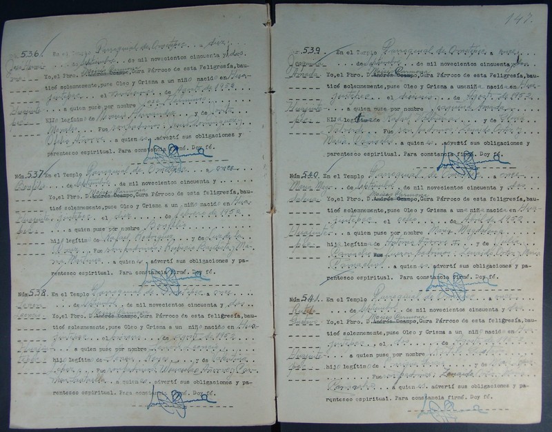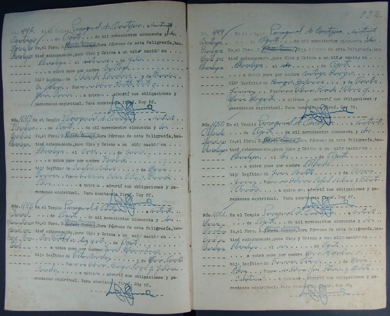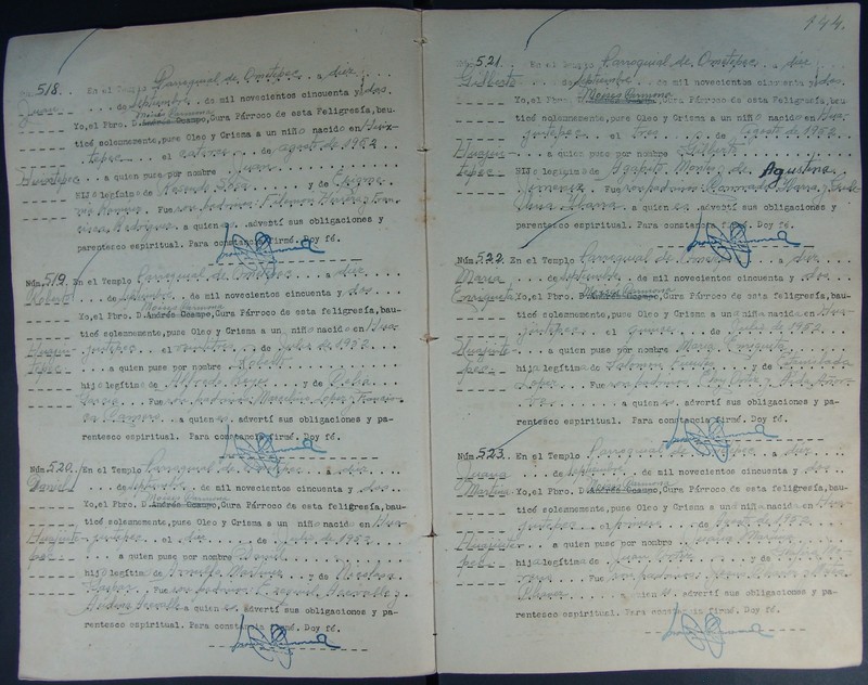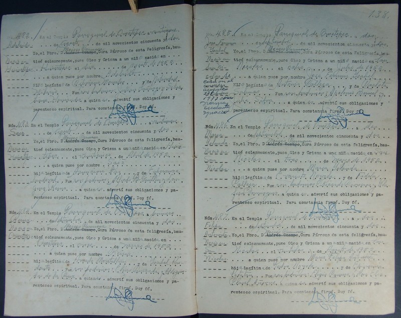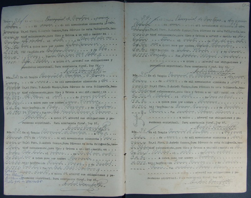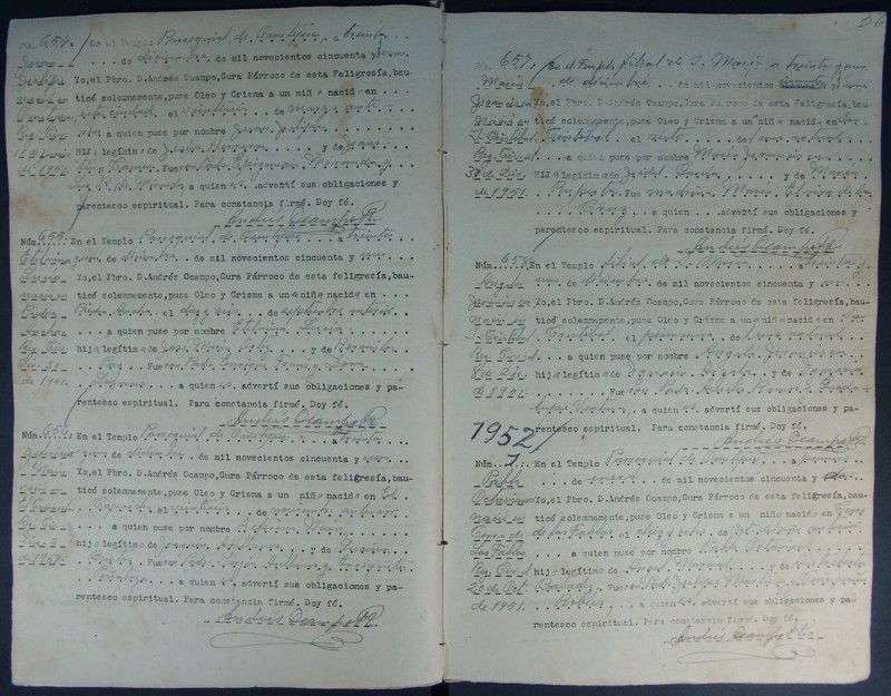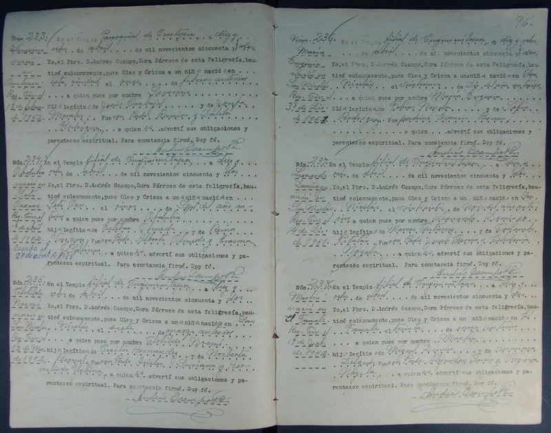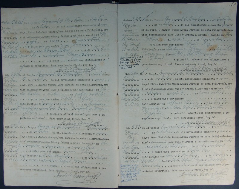 Libro 77. Bautismos de hijos legítimos de la parroquia de Ometepec, 1951-1952. Archivo Parroquial de Santiago Apóstol. Sección Sacramental