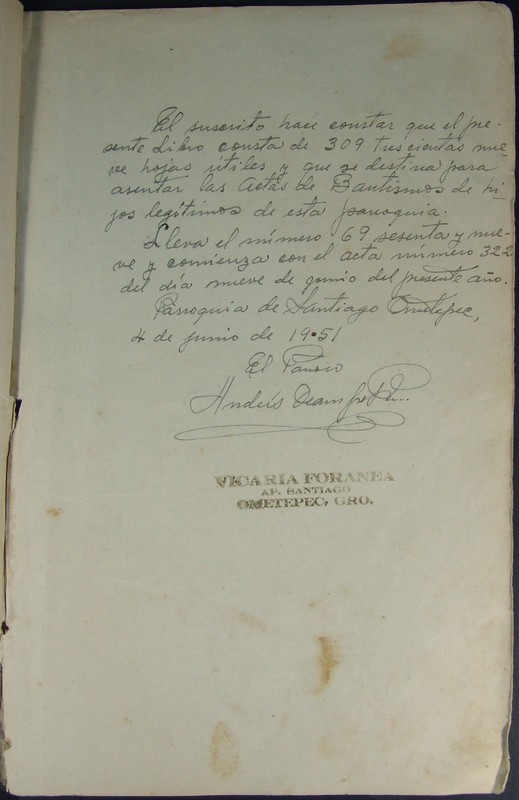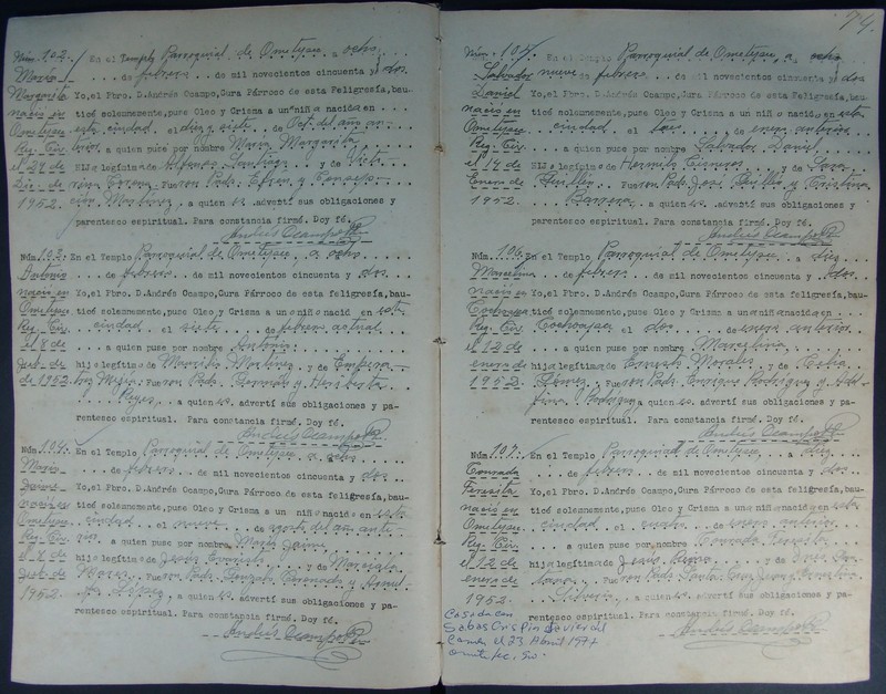 - Libro 77. Bautismos de hijos legítimos de la parroquia de Ometepec, 1951-1952