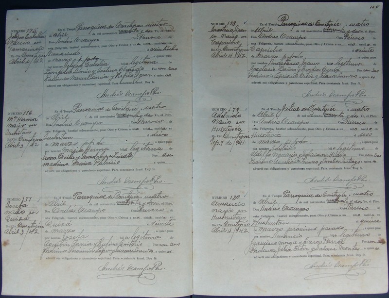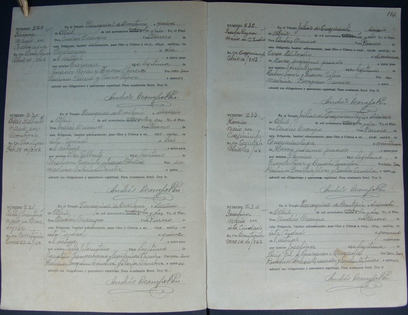 Libro 68. Bautismos de hijos legítimos de la parroquia de Ometepec, 1941-1943. Archivo Parroquial de Santiago Apóstol. Sección Sacramental