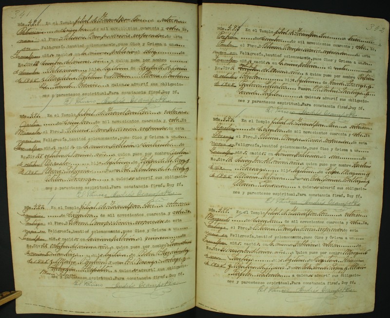 Libro 73. Bautismos de hijos legítimos de la parroquia de Ometepec, 1947-1949. Archivo Parroquial de Santiago Apóstol. Sección Sacramental