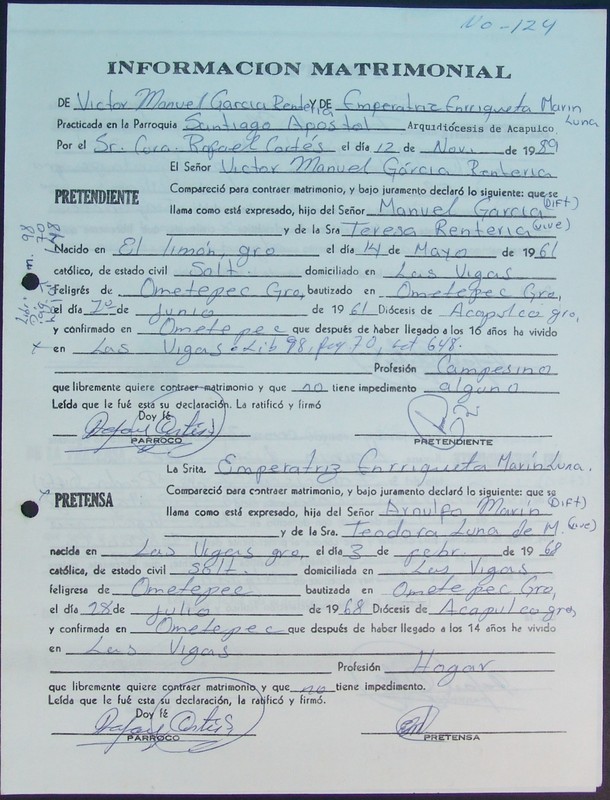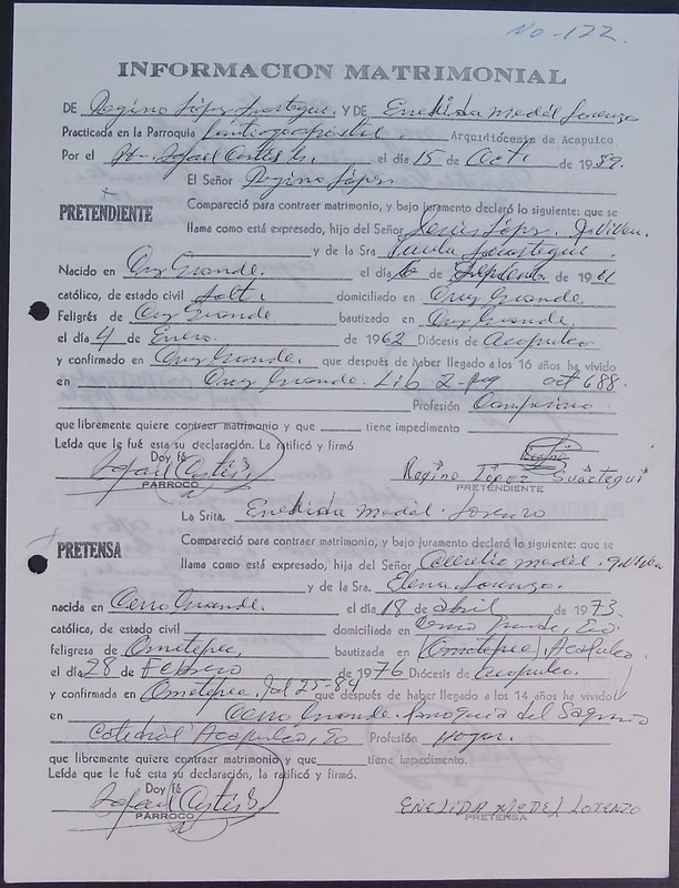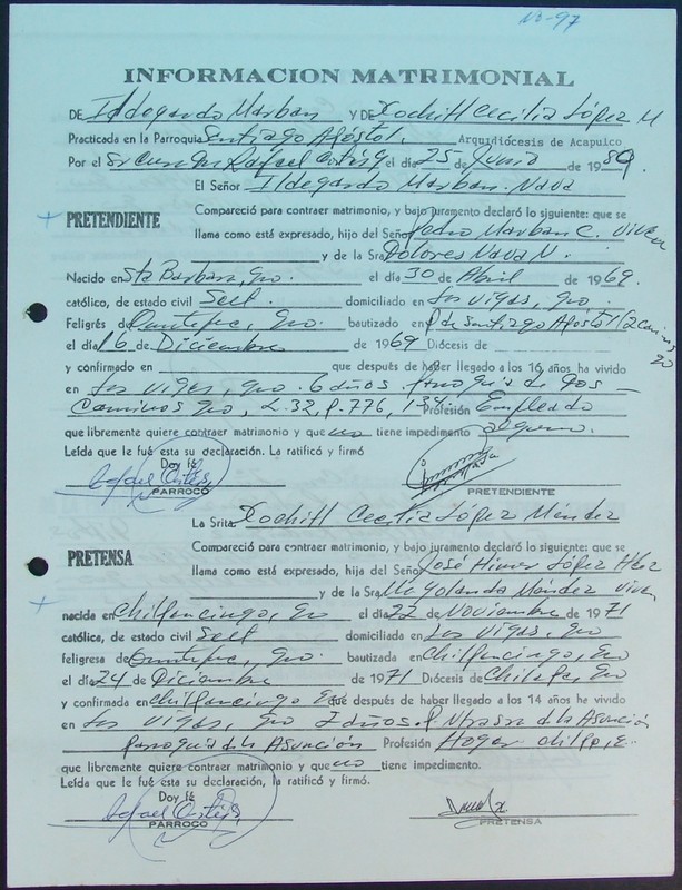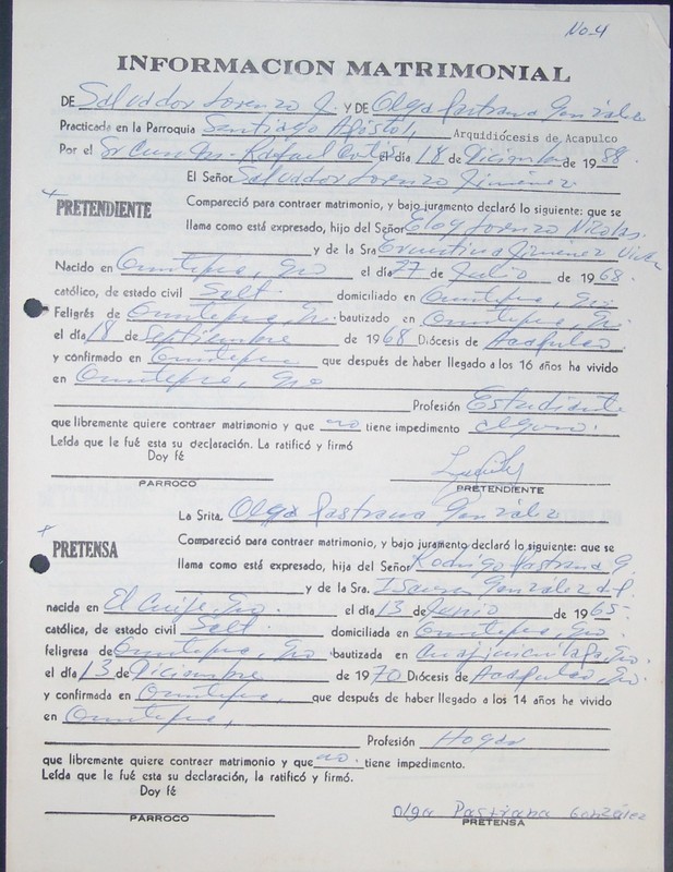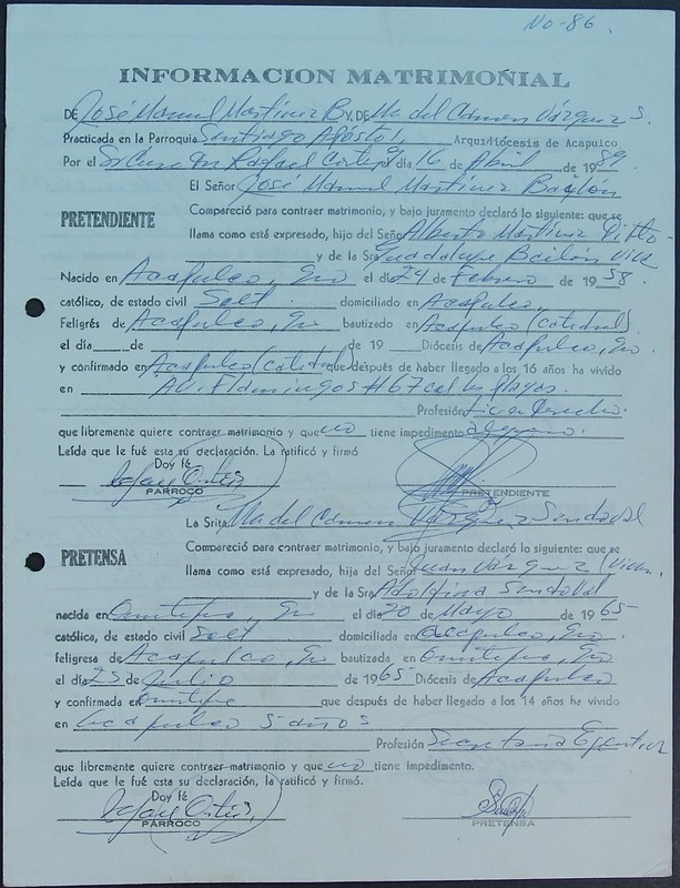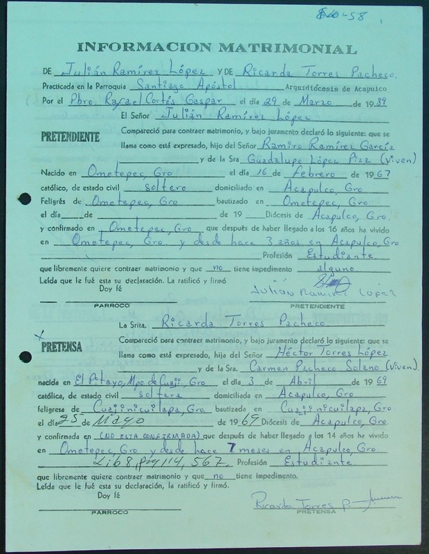Expediente 18. Información matrimonial, 1988-1989. Archivo Parroquial de Santiago Apóstol. Sección Sacramental