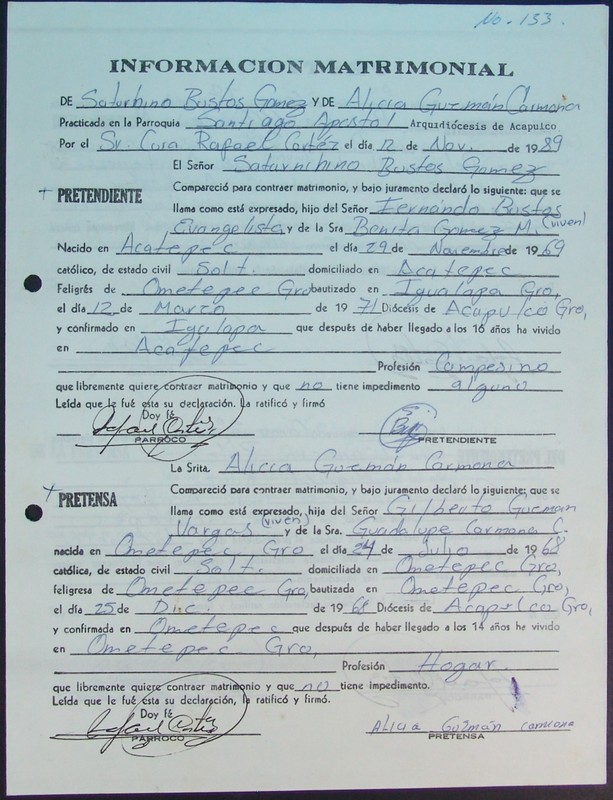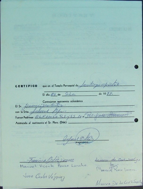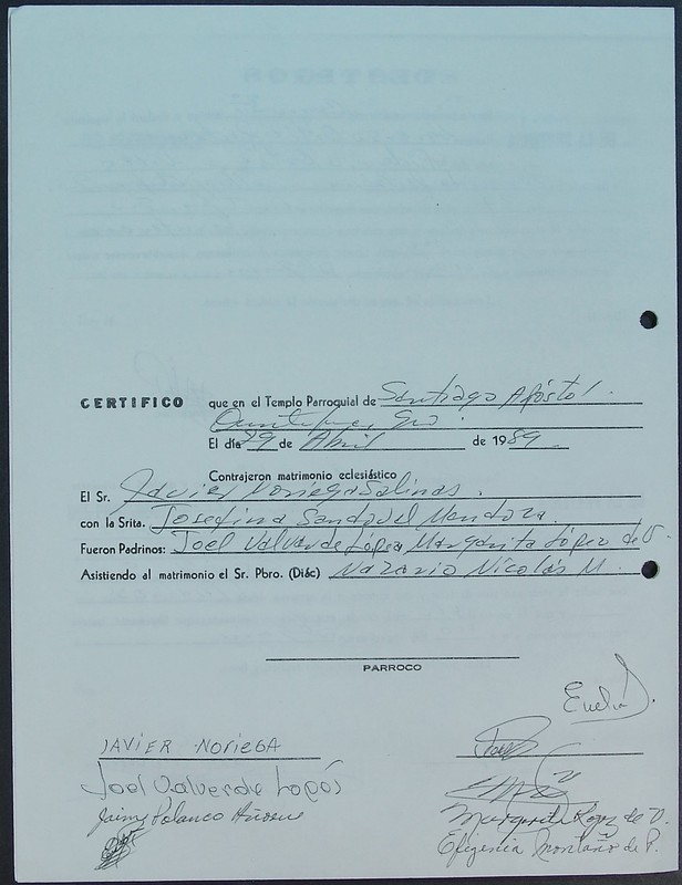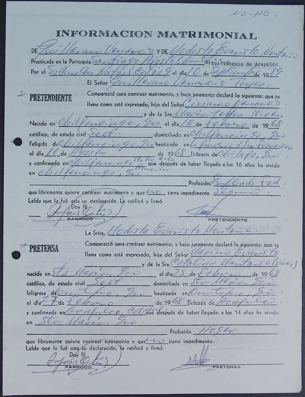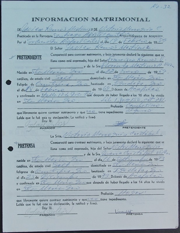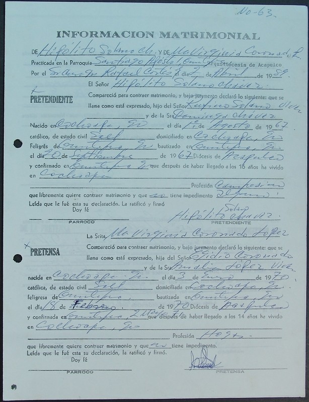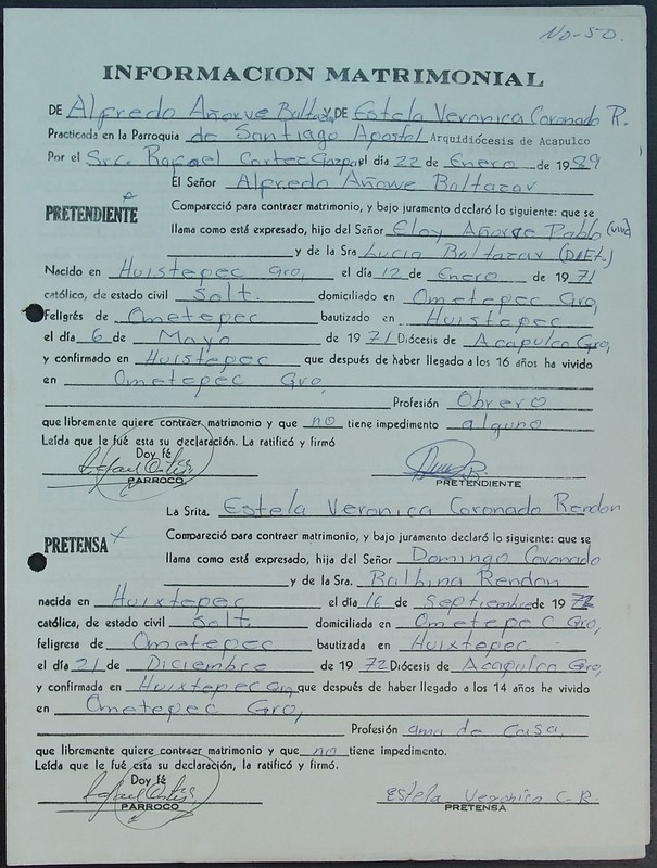 Expediente 18. Información matrimonial, 1988-1989. Archivo Parroquial de Santiago Apóstol. Sección Sacramental
