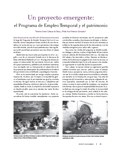 - Un proyecto emergente: el Programa de Empleo Temporal y el patrimonio
