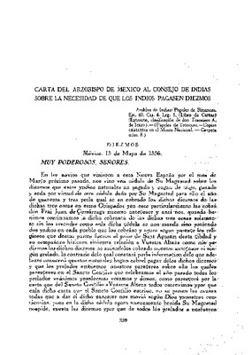 - Carta del Arzobispo de México al Consejo de Indias sobre la necesidad de que los indios pagasen diezmos.