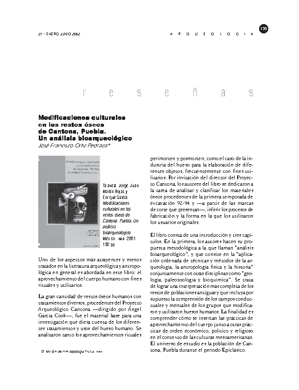 Modificaciones culturales en los restos óseos de Cantona, Puebla. Un análisis bioarqueológico; La Gran Chichimeca. El lugar de las rocas secas