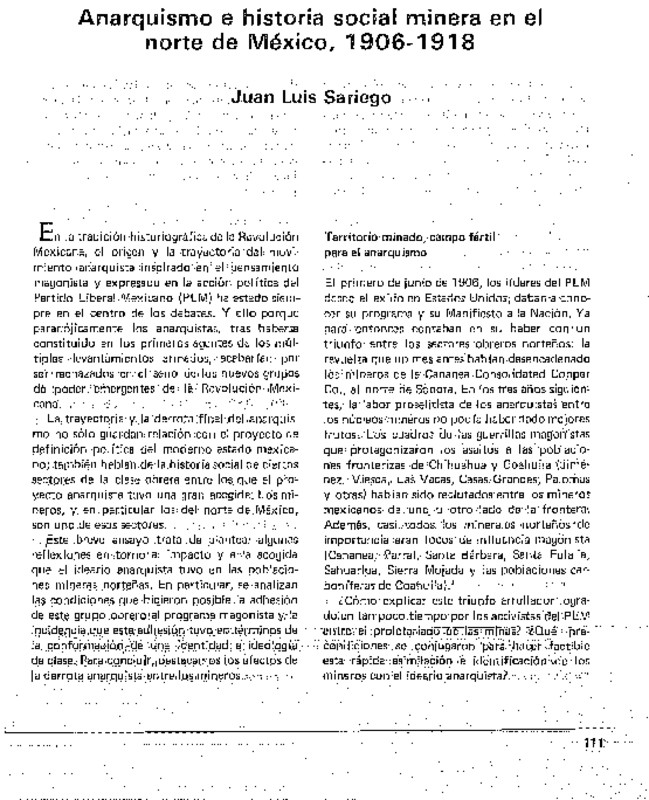 - Anarquismo e historia social minera en el norte de México, 1906-1918