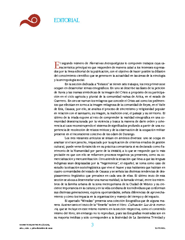 - Narrativas antropológicas Num. 2 Año 1 (2020) julio-diciembre