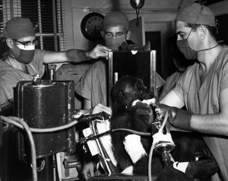 - Veterinarios brindan atención médica a un primate