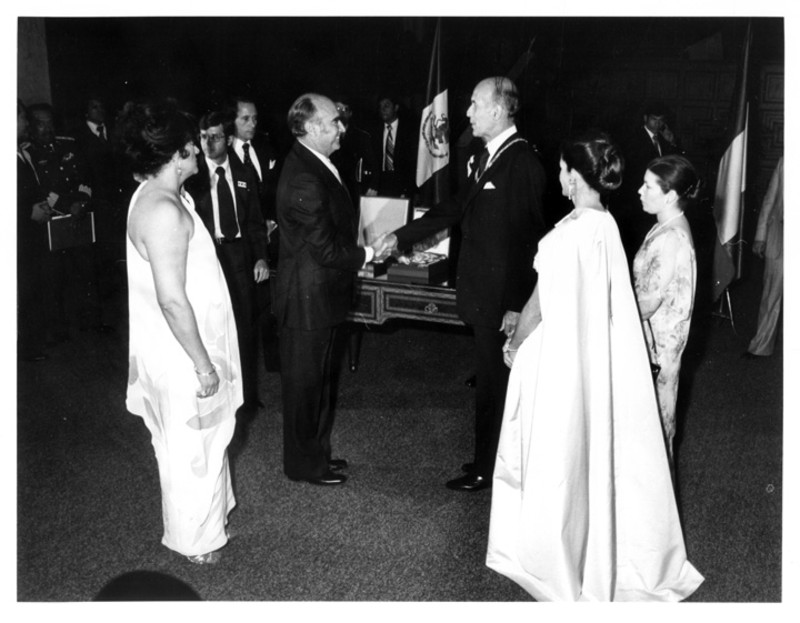 - José López Portillo da la bienvenida al presidente de Francia y su esposa.