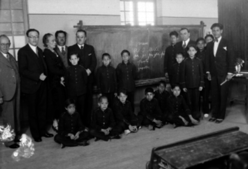 - José Manuel Tapia, hombres y niños en un salón de clases de una casa de asistencia