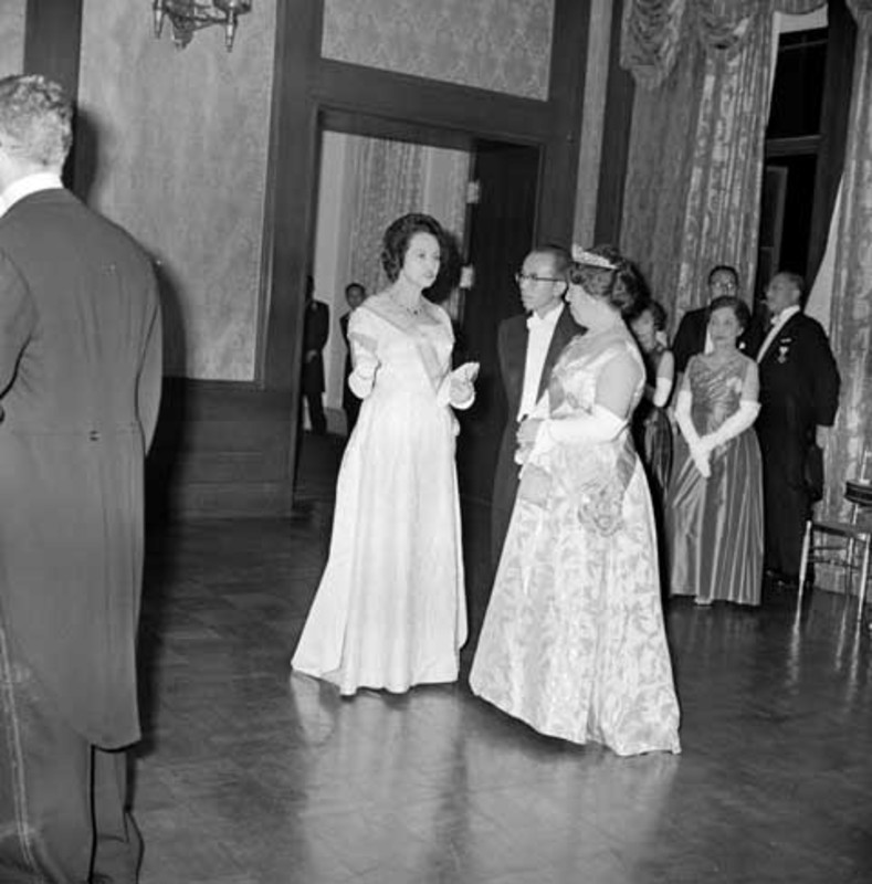 Eva Sámano conversando con la emperatriz del Japón durante un banquete ofrecido a López Mateos en Palacio Imperial