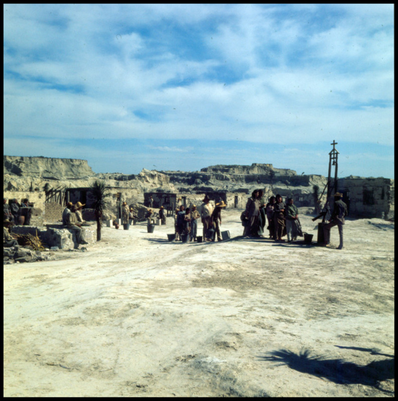 - I.O. En el borde del negativo, "KODAK SAFETY FILM" Fotograma "3" Inscripción en la guarda:"Incremento Acervo "La casa del sur 7". Generalidades: V.F. 469316. Esta es una escena en la que los pobladores van por agua que les es repartida cerca de la iglesia. Se identifica a Patricia Reyes Spíndola.