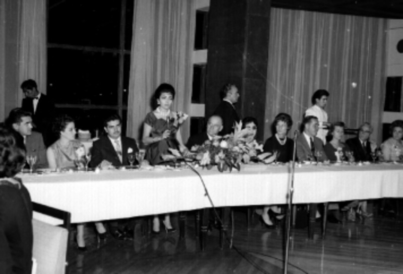 - Secretarias haciendo uso de la palabra en presencia de otros individuos en un banquete.