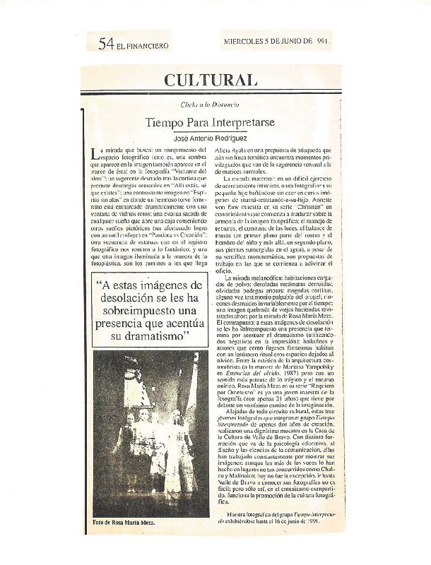 - Nota sobre Muestra fotográfica del grupo Tiempo interpretado junio, 1991, Casa de la Cultura de Valle de Bravo.