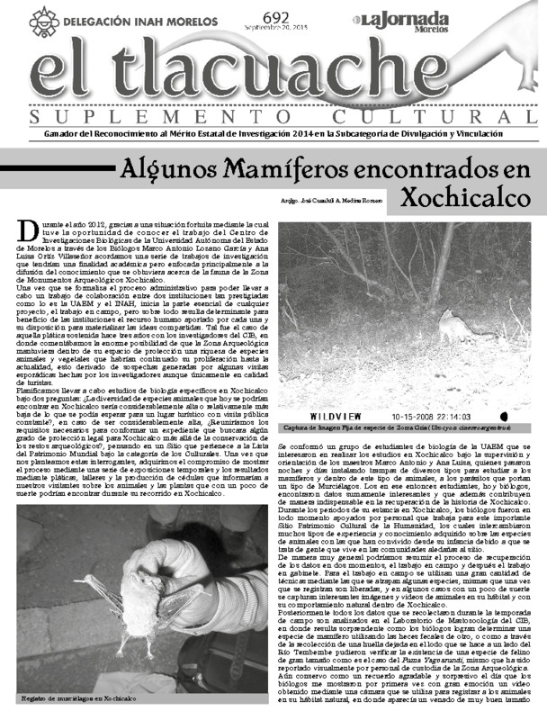- El Tlacuache N°. 692 Año 13 (2015) septiembre