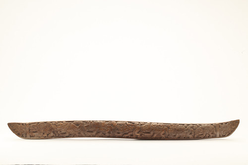 - Pulido. Los extremos rematan en cabezas de reptil, en el cuerpo presenta una procesión de seis coyotes con elementos marinos en el lomo, al centro se observa un personaje flexionado con pie de cánido.