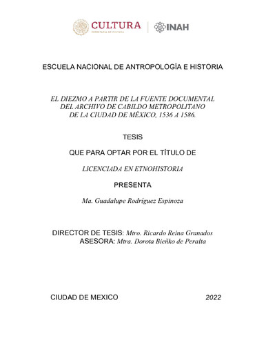 - El diezmo a partir de la fuente documental del archivo de cabildo metropolitano de la Ciudad de México, 1536 a 1586