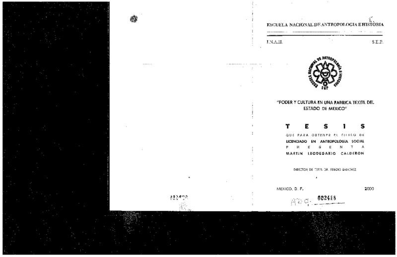 - Tesis para obtener el grado de Licenciatura en Antropología Social