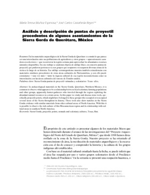 Análisis y descripción de puntas de proyectil procedentes de algunos asentamientos de la Sierra Gorda de Querétaro, México ...