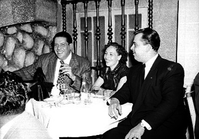 Panseco acompañado por una pareja conviviendo en la mesa de un restaurante ...
