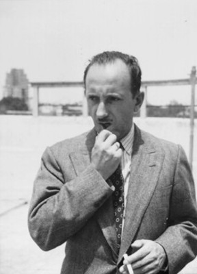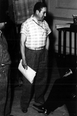 Miguel Contreras Torres, productor, con actores durante la filmación de la película El hombre sin patria ...