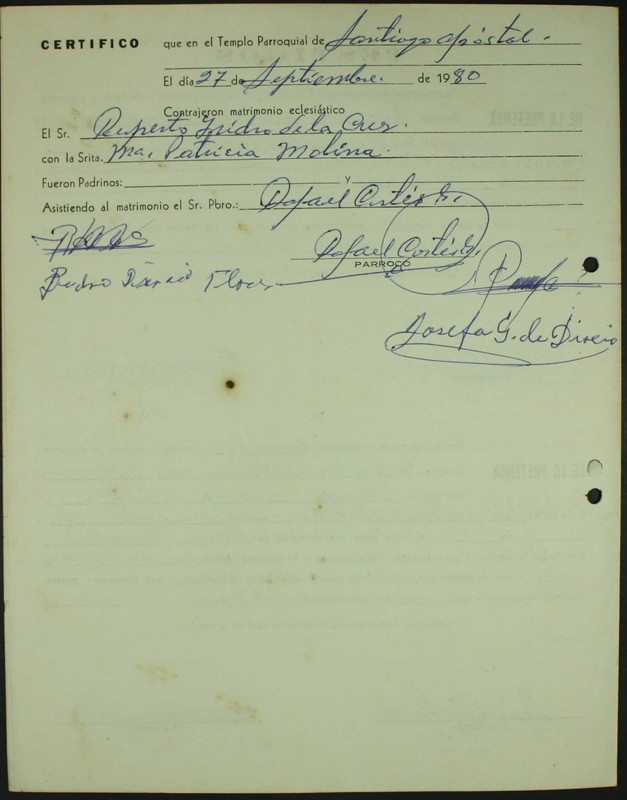 Expediente 7. Informsción matrimonial, 1980. Archivo Parroquial de Santiago Apóstol. Sección Sacramental