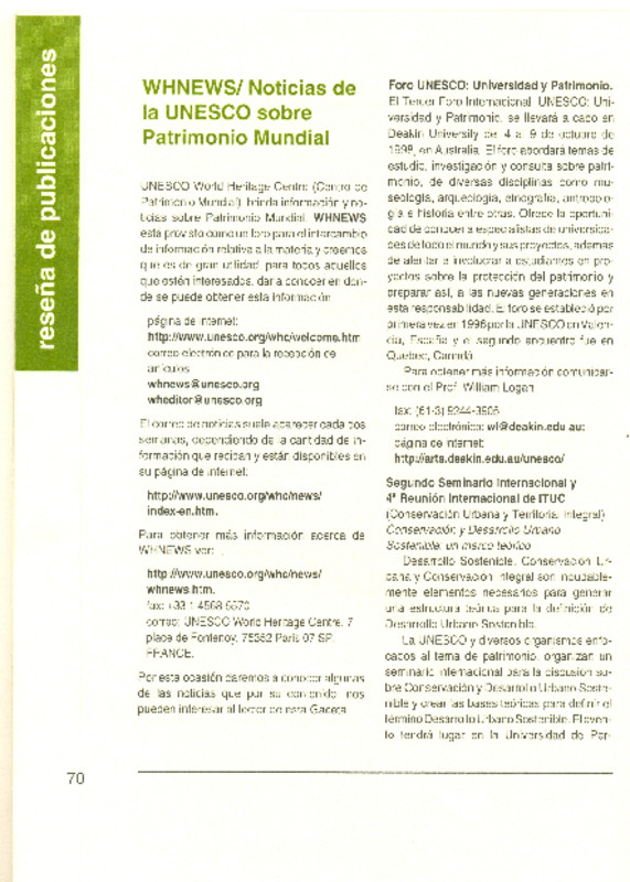 - WHNEWS/Noticias de la UNESCO sobre Patrimonio Mundial