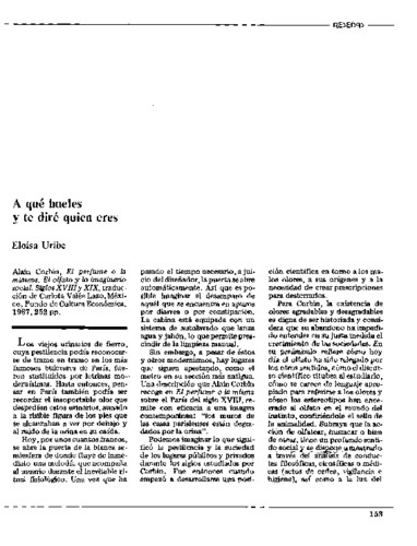 - Alain Corbin, El perfume o la miasma. El olfato y lo imaginario social. Siglos XVIII y XIX, traducción de Carlota Valée Lazo, México, Fondo de Cultura Económica, 1987, 252 pp.