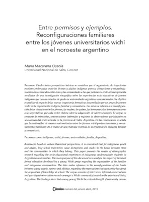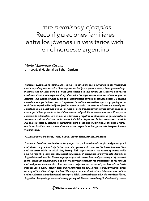 - Entre permisos y ejemplos. Reconfiguraciones familiares entre los jóvenes universitarios wichí en el noroeste argentino