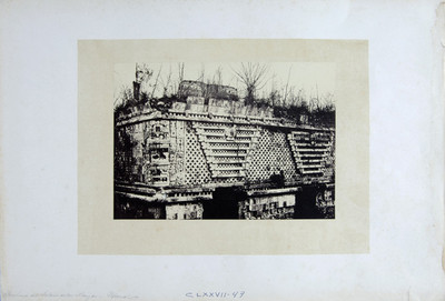 - I.O. En soporte secundario. Anverso: "Fachada del Palacio de las Monjas", en el sello gofrado: "JULIO MICHAUD. MEXICO", "CLXXVII-47". NOTA: Información de Fecha de asunto proporcionada por José Antonio Rodríguez. NOTA1: Está pieza fotográfica y doce más del acervo, formaron parte de la lista de obra para ser expuesta del 12 de febrero al 08 de abril del 2010; en la exposición temporal titulada Maya Puuc, con sede en la Sala de Exposiciones Temporales Nacionales del Museo Nacional de Antropología, a solicitud de la Coordinación Nacional de Museos y Exposiciones-INAH. Anotación hecha por Violeta García P., enero 2012. V.F. 351729, 351732, 360169, 455311, 455313, 426305, 426302, 426324, 426286, 416839, 416843, 417706.